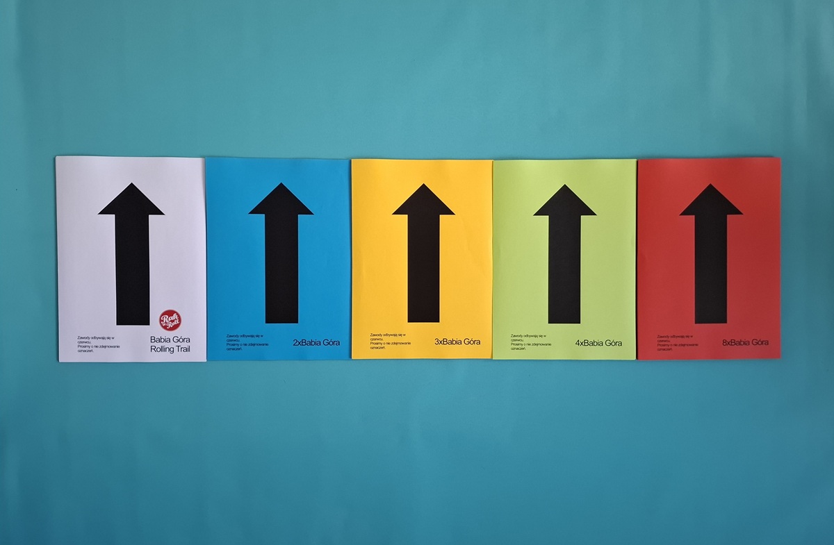 Na odcinkach poza szlakami turystycznymi i drogach leśnych należy kierować się oznaczeniem taśmami i strzałkami kierunkowymi w kolorze przypisanym do danego dystansu.